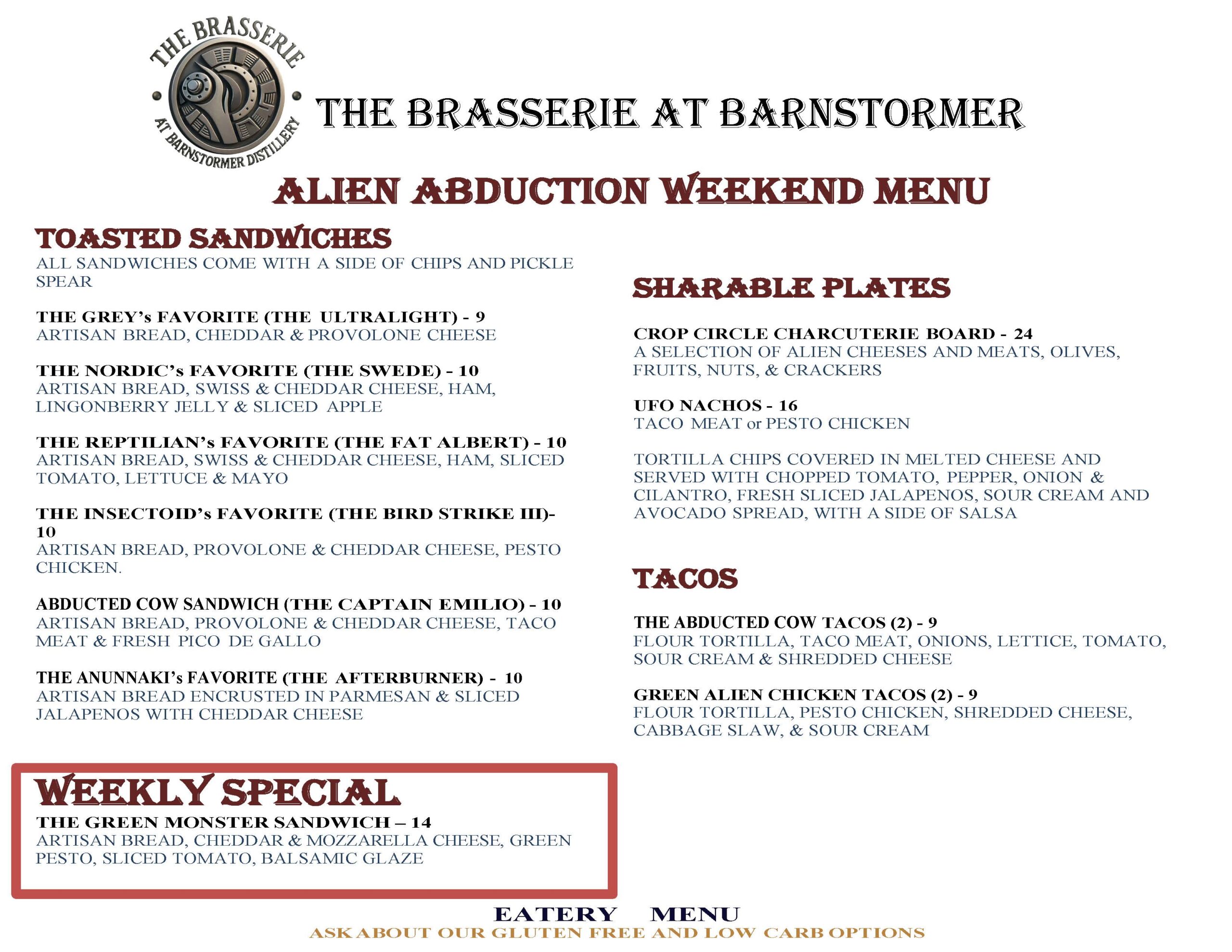 Menu changes weekly. Items subject to availability and Chef Tim’s inspiration.